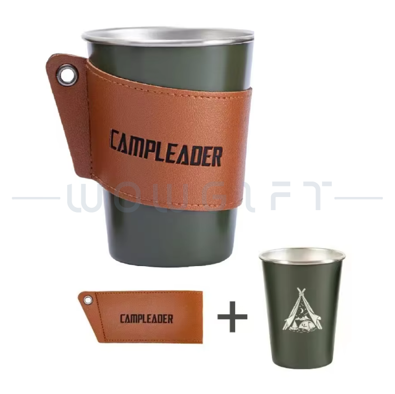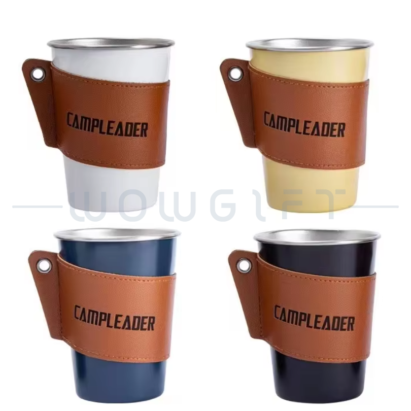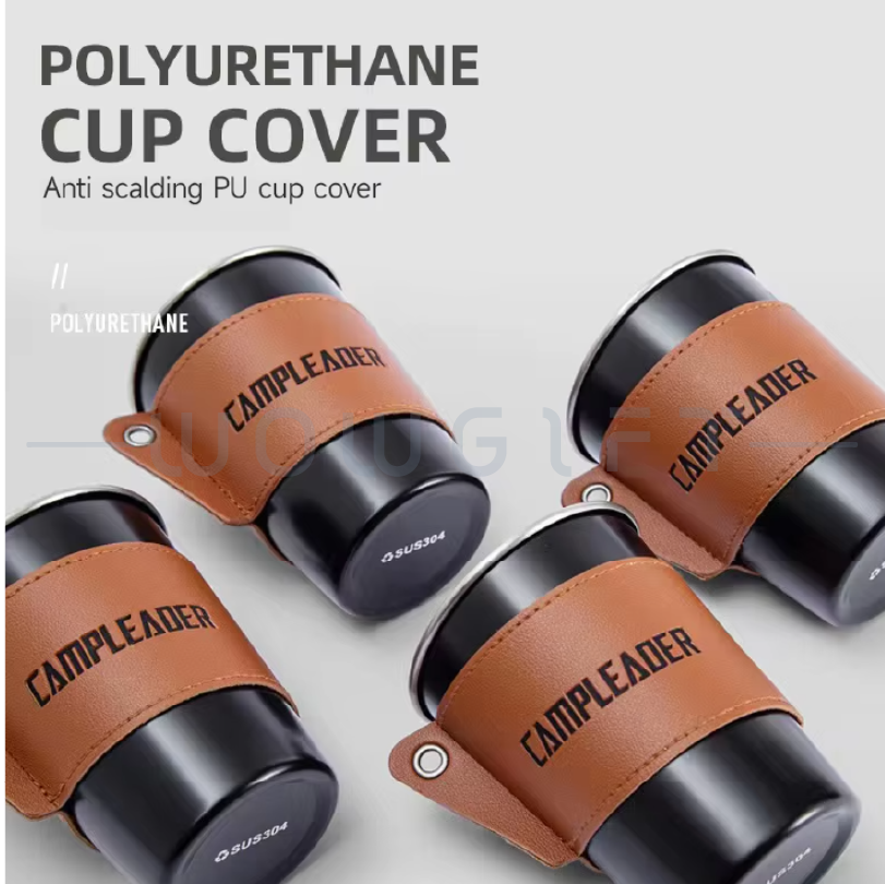 露營不銹鋼杯|皮革杯套