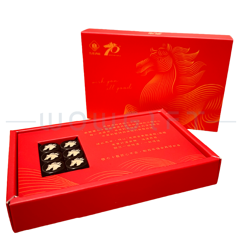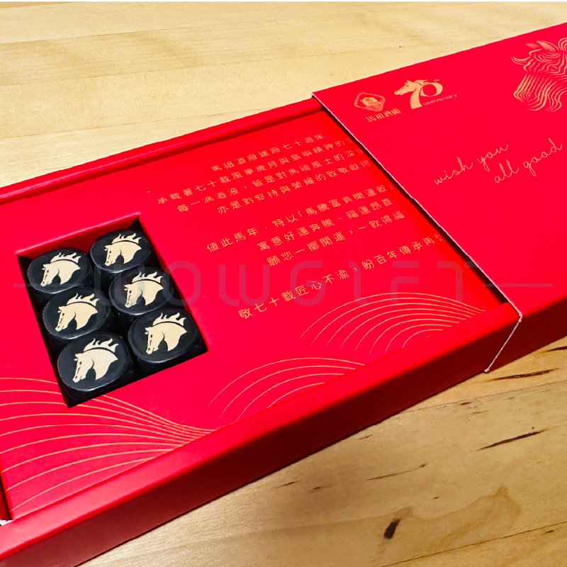本案例為 泰山總經銷 × 馬祖酒廠週年紀念禮盒,整體以紅金配色設計,搭配印刷與專屬內容文案,展現品牌歷史與紀念價值。內部結合客製內容物與精緻包裝,適合作為 企業週年慶、品牌紀念活動或高端客戶贈禮,提升品牌形象與尊榮感。