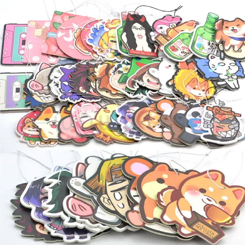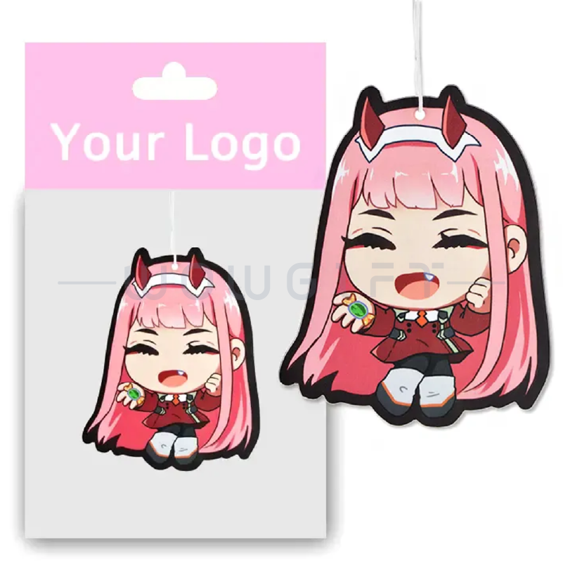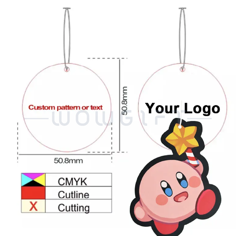 Custom Logo & Shape車用香氛掛片採用高效揮發紙與持久香氛精油,可依品牌需求製作專屬造型、Logo 與香味。