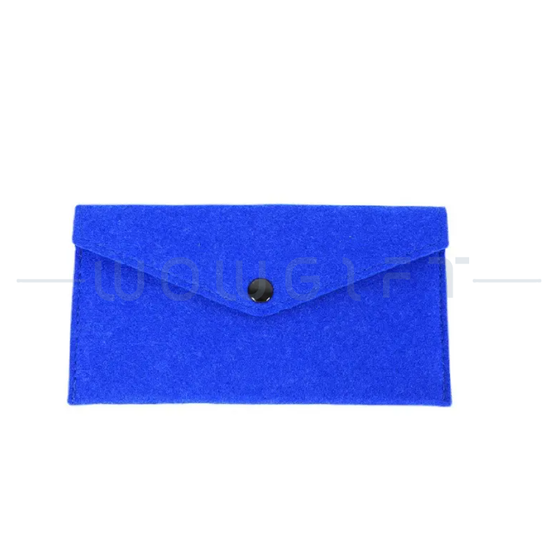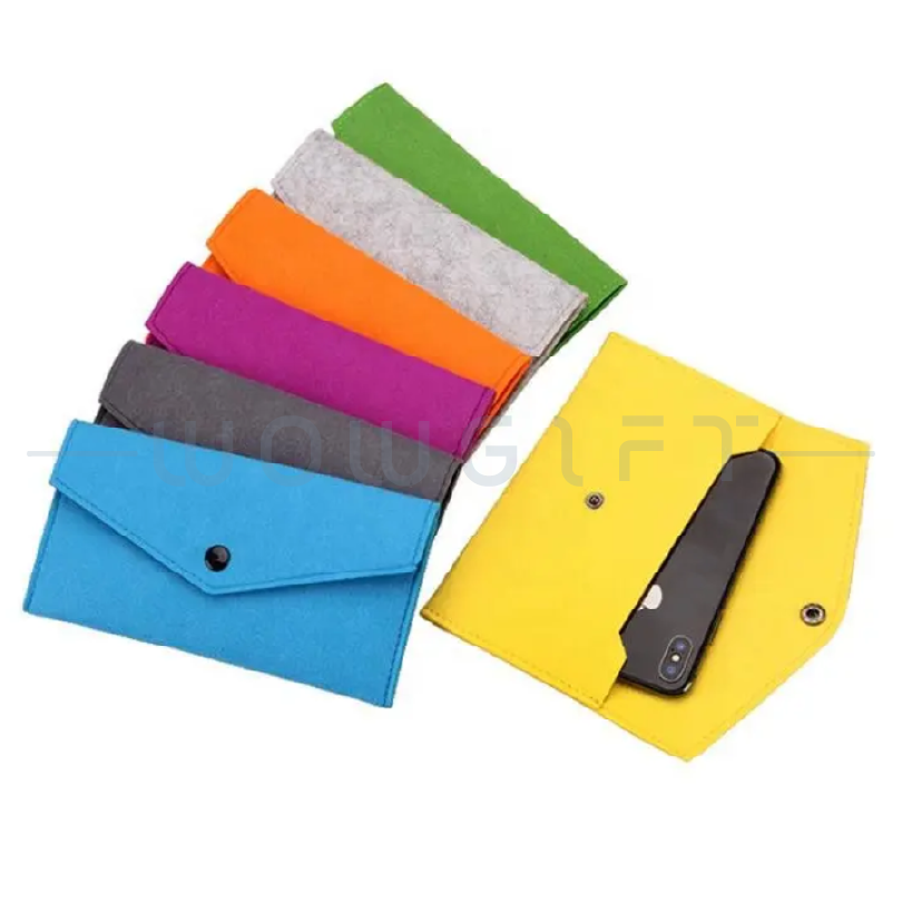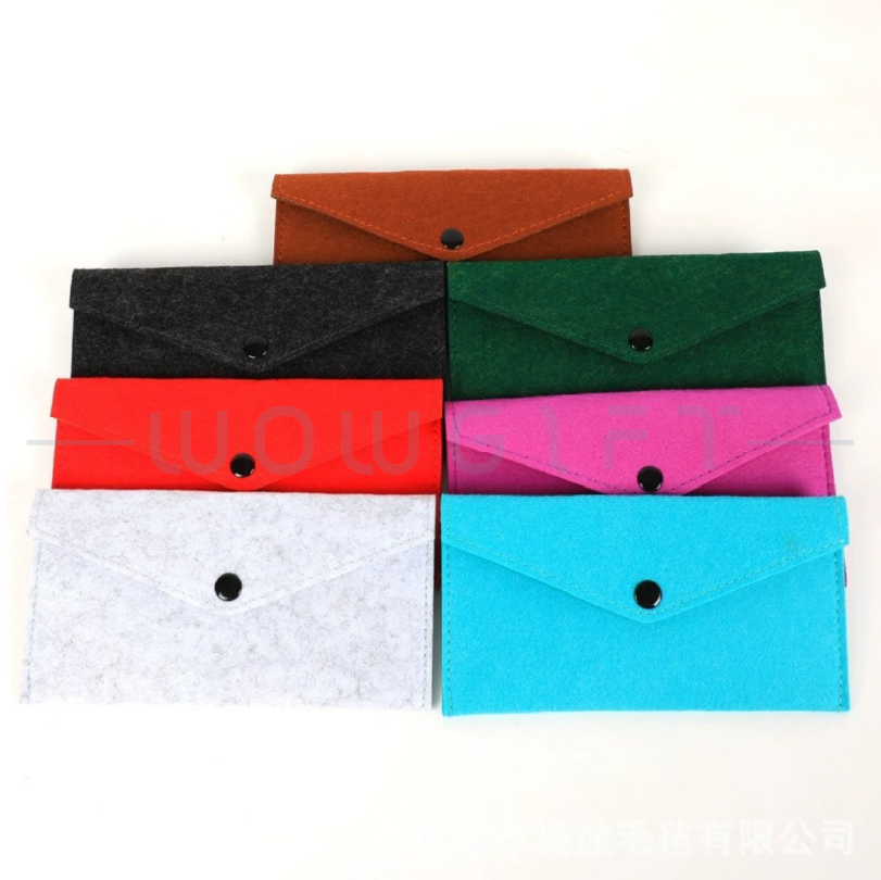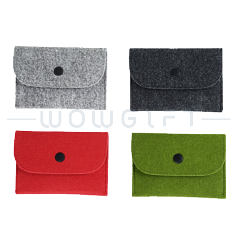 Soft Felt|Snap Button Closure|Logo Customizable選用質感毛氈布料,觸感柔軟、輕巧便攜,可收納手機、小物、零錢與名片等日常用品。提供客製化 LOGO 與顏色選擇,適合企業宣傳、活動禮品、品牌行銷用途。