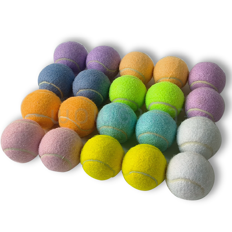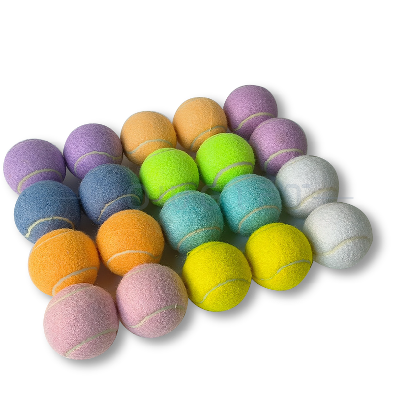 Soft Texture|Bounce Training|Multiple Colors馬卡龍色系的彩色訓練網球,採用彈力內芯與細緻包絨外層,適合寵物訓練、互動遊戲、戶外運動等用途。重量輕、好抓取、不傷牙,是寵物店、活動贈品、品牌客製化 LOGO 的熱門項目。