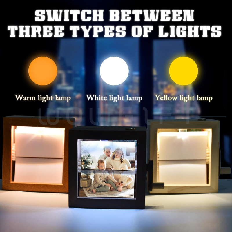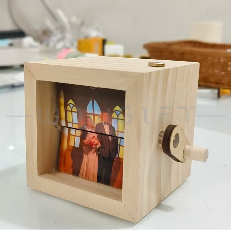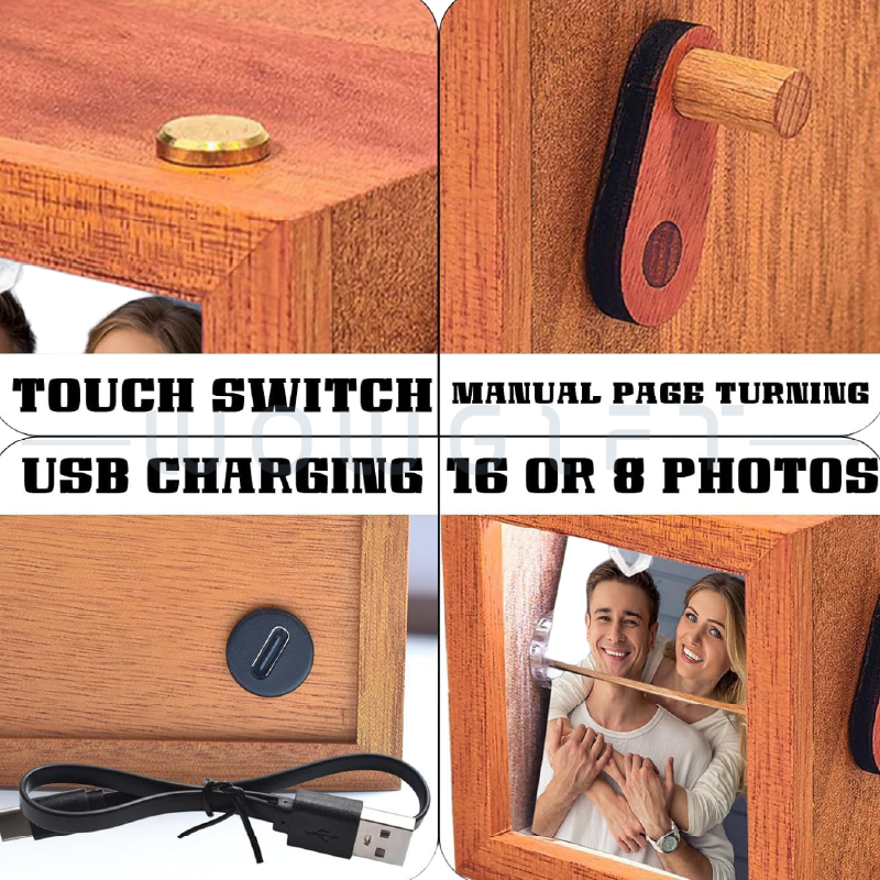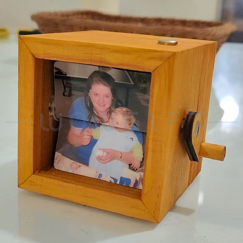 以「手搖翻頁+暖光展示」呈現回憶的創意相框,透過手搖機構讓照片逐張翻頁播放,搭配 LED 發光效果,開箱儀式感強、展示吸睛。適合作為母親節/品牌活動/員工表揚/VIP 客戶回饋等情境禮,支援木盒顏色選擇與雷雕客製,可將品牌標識、祝福語或活動主題融入,提升收禮者互動感與品牌記憶點。