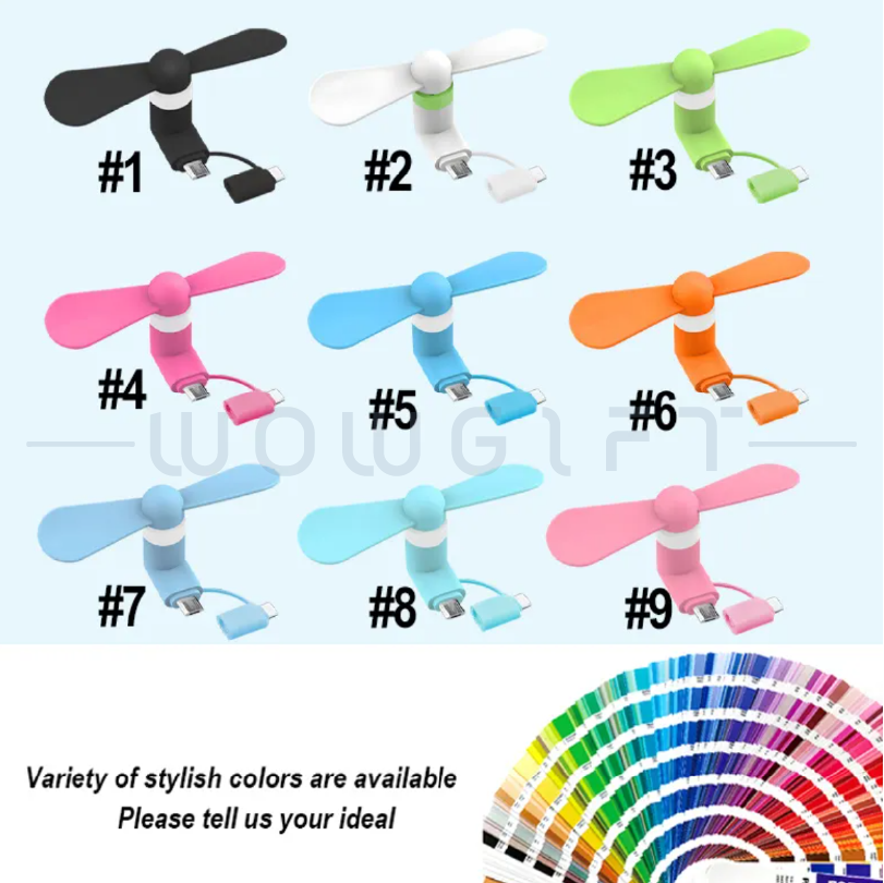 Portable|Colorful|Logo Custom輕巧便攜的 USB 手機小風扇,支援多種接頭(安卓、Type-C、iPhone),插上即用。多色現貨可選,可印企業 LOGO,非常適合作為活動贈品、展場禮品、夏季促銷品、公部門宣導品與企業小禮。
