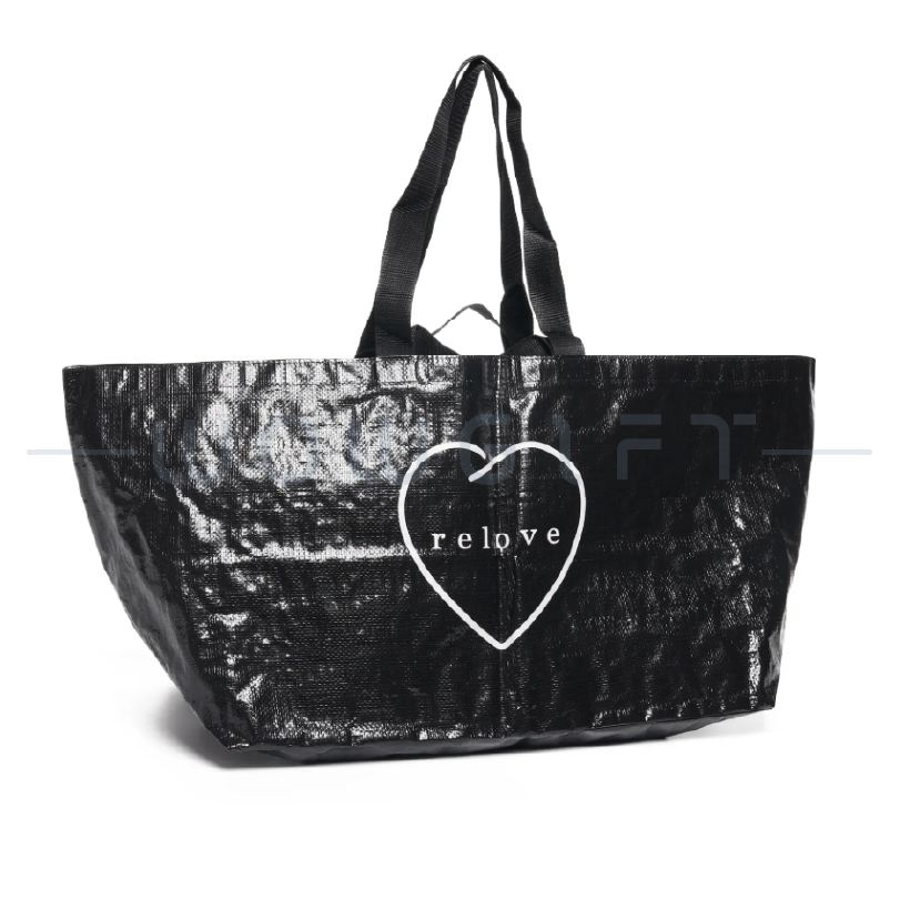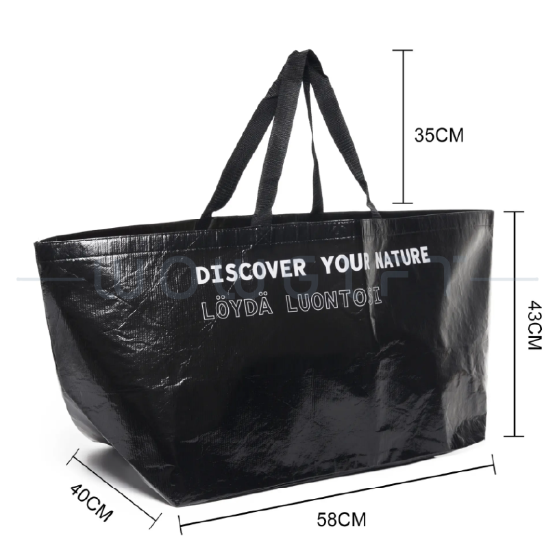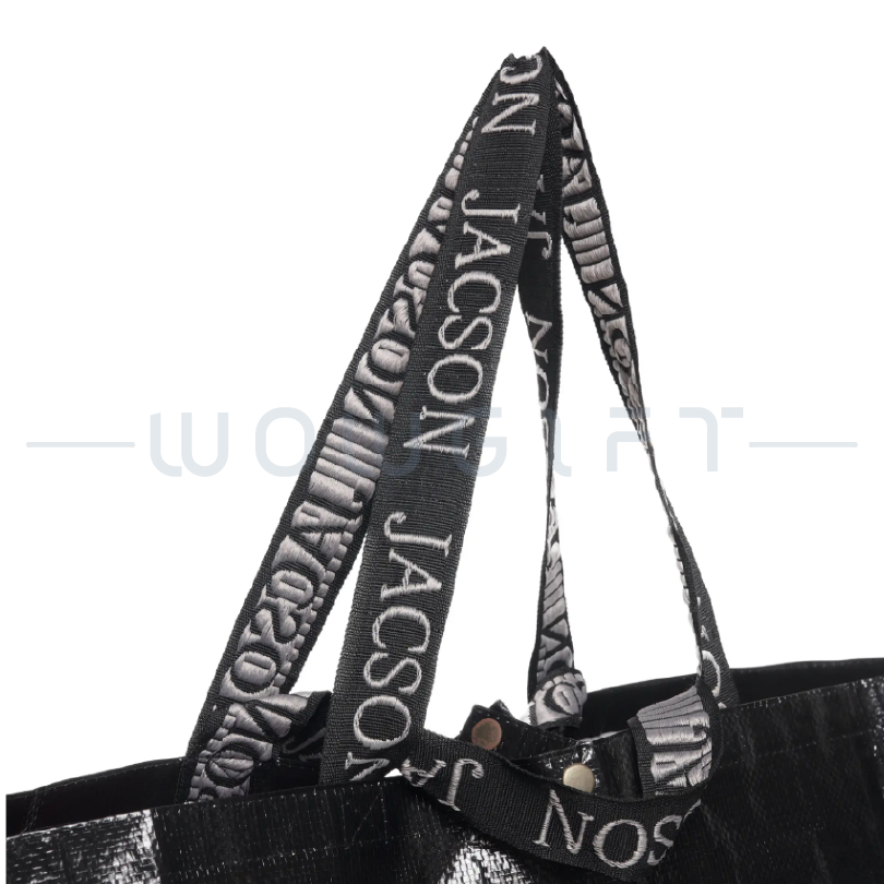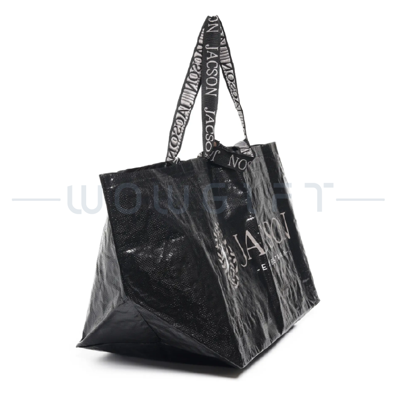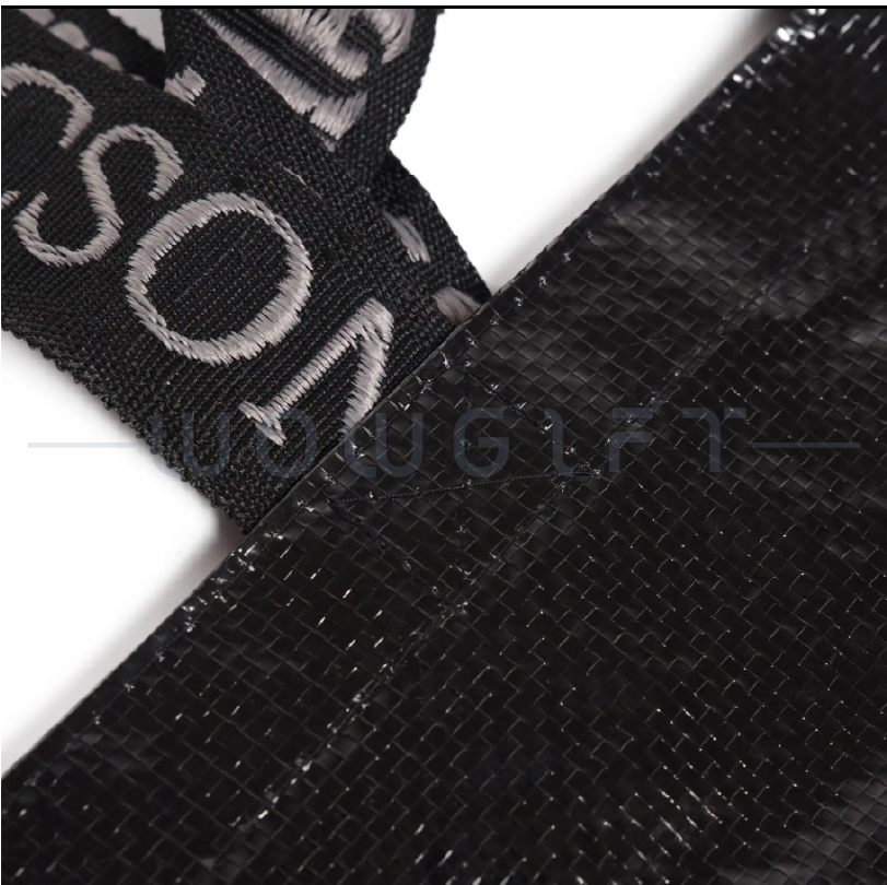 Waterproof|Large Capacity|Custom Logo大容量覆膜編織袋,採用 120g 加厚 PP 材質,耐重、防水、防髒污,適合企業大量採購。可客製 LOGO、廣告標語、品牌識別,非常適合作為展會袋、門市購物袋、活動贈品與電商出貨包裝。輕便耐用、重複使用,是環保又具宣傳效果的熱銷款。