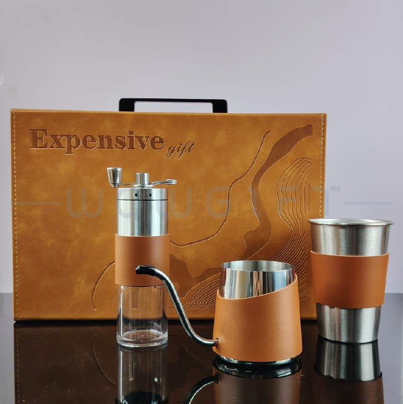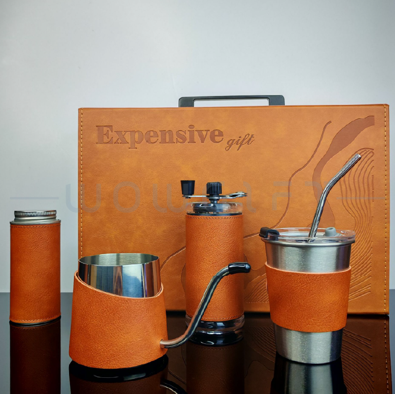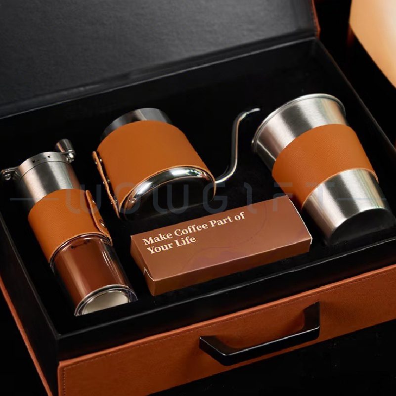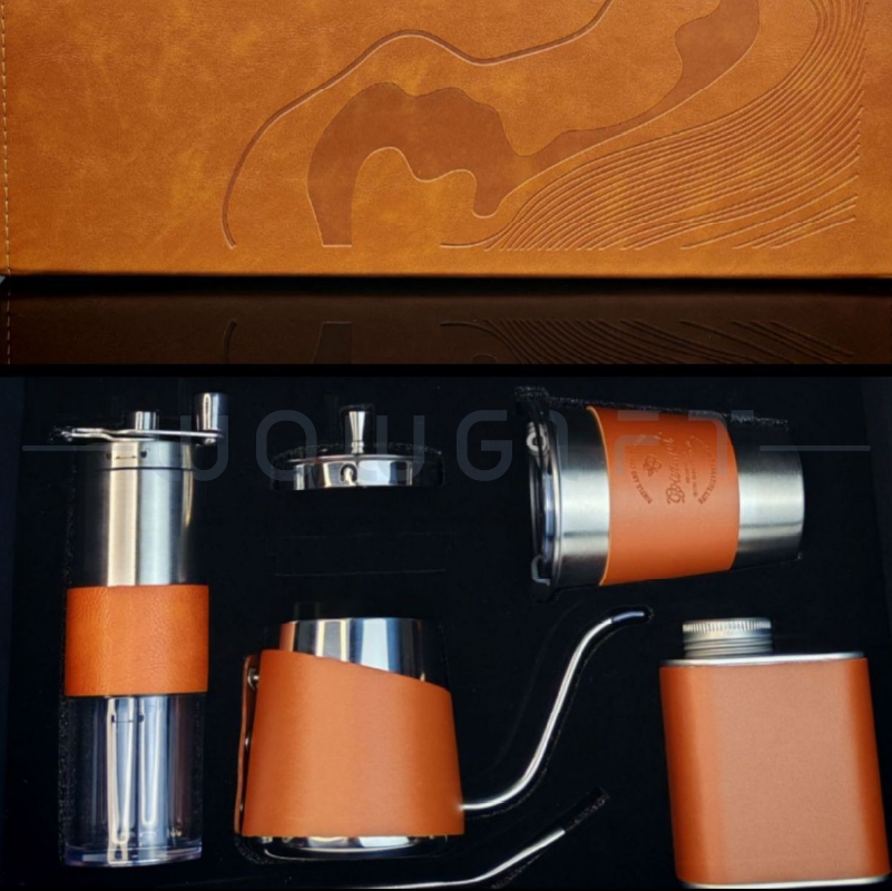 Outdoor Brewing Kit|Logo Customization這款 手沖咖啡禮盒套組 以高質感木紋/皮革外盒搭配不鏽鋼手沖器具,完整包含手沖壺、濾杯、咖啡杯、隨行罐等多款組合選擇,是企業年度禮、品牌公關禮、會員回饋禮的熱門品項。外盒挺度高、開合俐落,可客製 LOGO、燙金或禮盒組合,無論活動贈禮或商務伴手都能體現品牌品味。