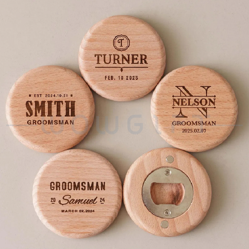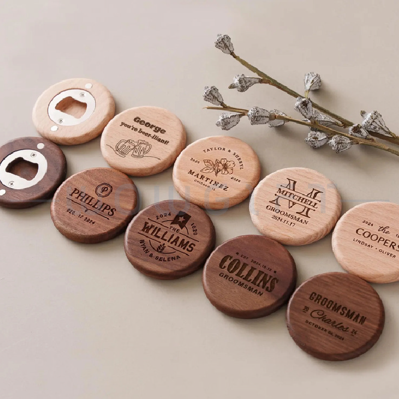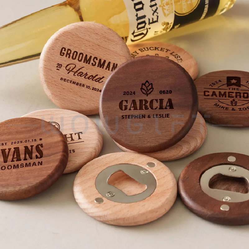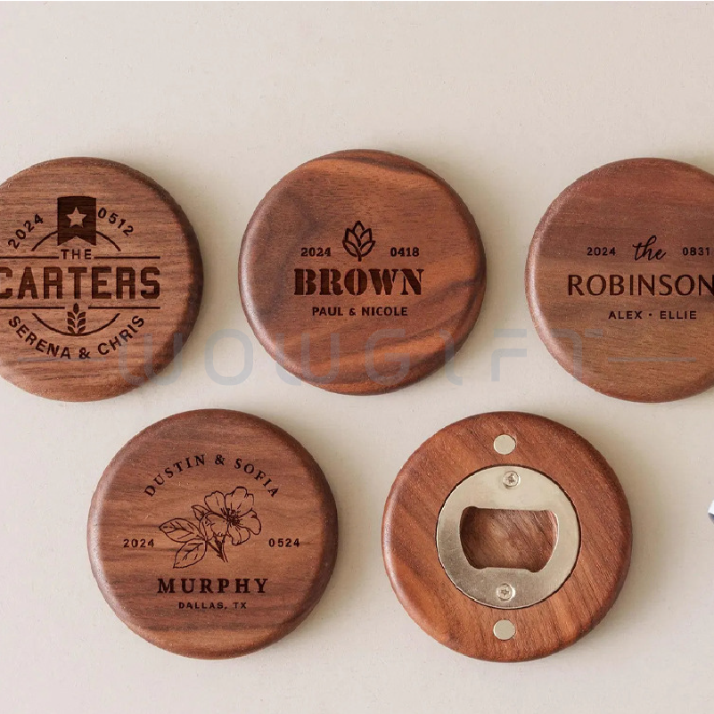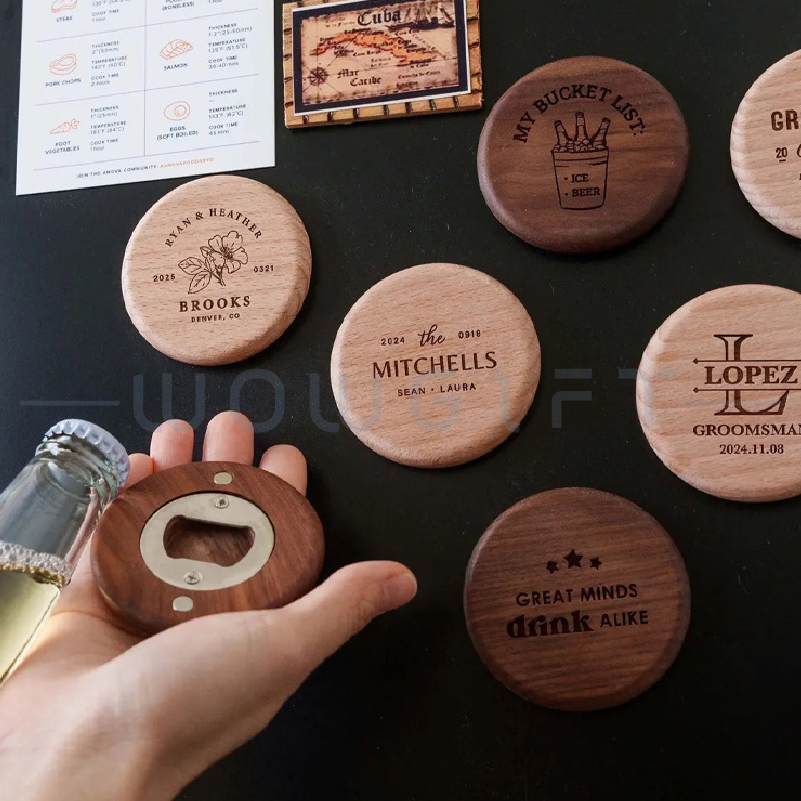 Custom Wooden Bottle Opener|Round Magnetic Beer Opener