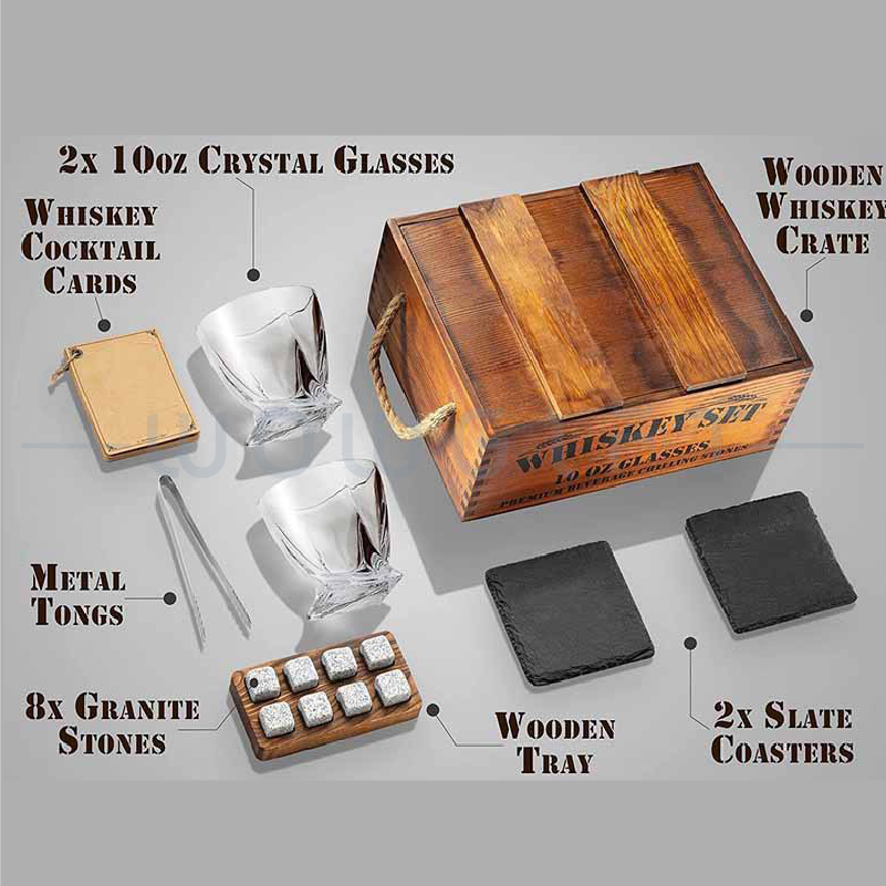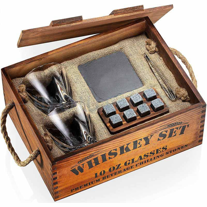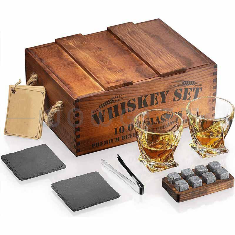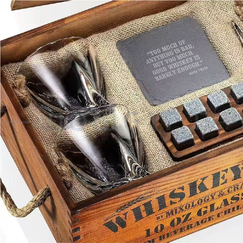 中文特色:復古木盒|分隔內襯收納|含酒杯+冰酒石+夾子等套組|開箱質感佳|LOGO可客製